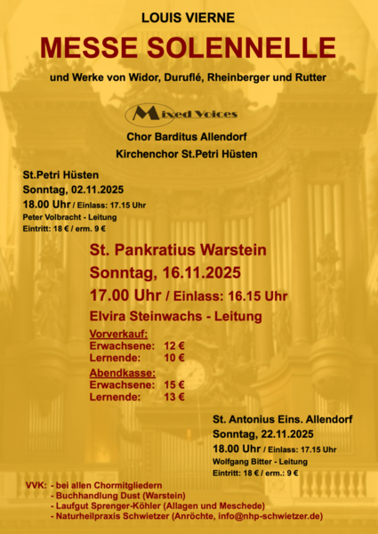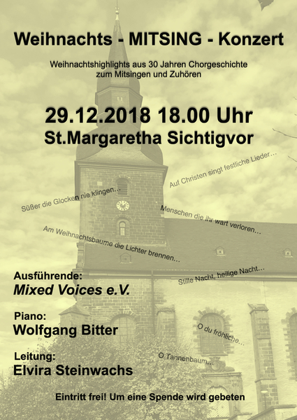 Die Chorproben finden regelmäßig im Pfarrsaal St. Margaretha, Im Kirchholz 4a, in 59581 Sichtigvor statt.