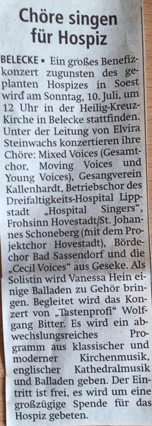 Die Chorproben finden regelmäßig im Pfarrsaal St. Margaretha, Im Kirchholz 4a, in 59581 Sichtigvor statt.